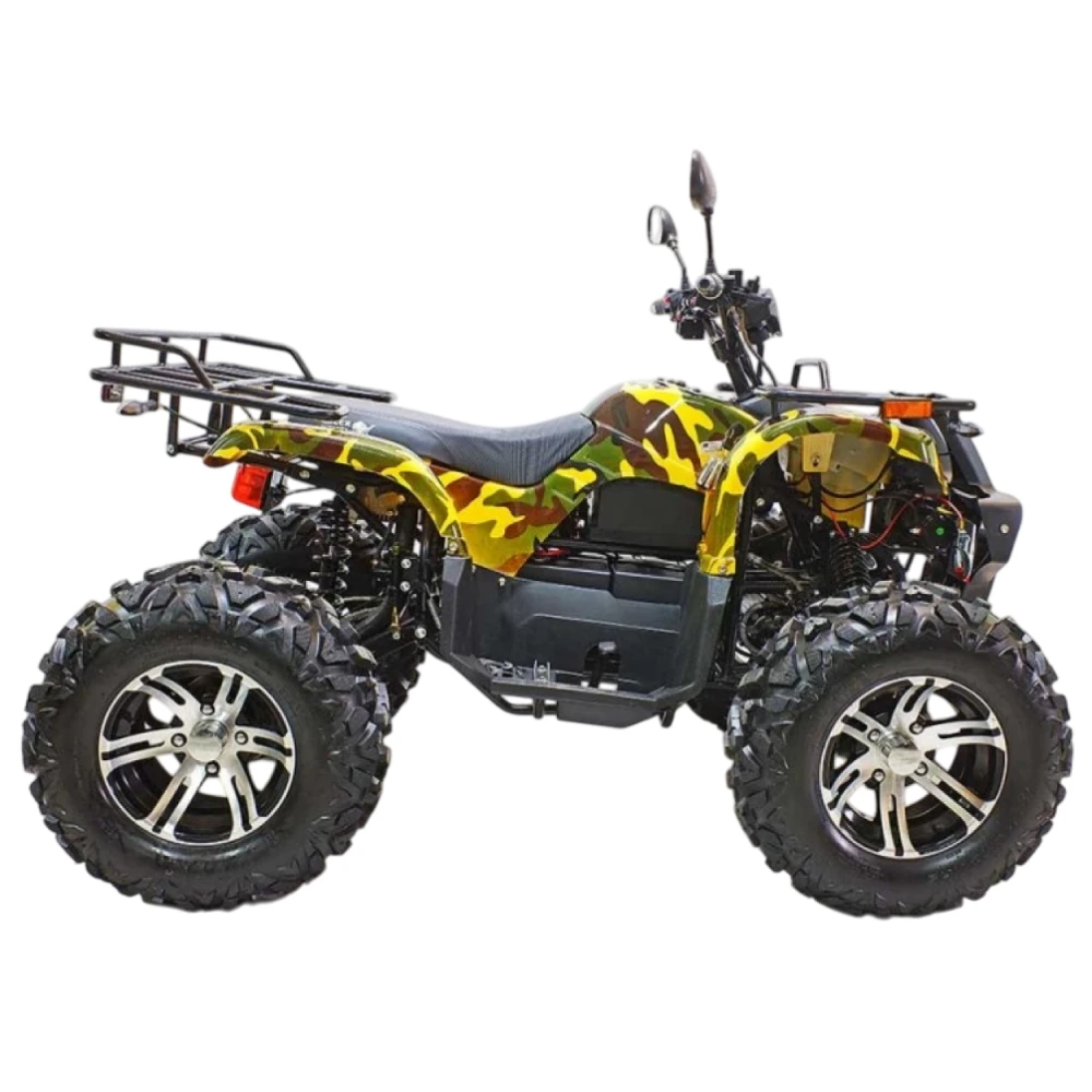 Выносливый, мощный, напористый – это всё про GreenCamel Sahara A3400 4x4. Прекрасная модель квадроцикла с впечатляющими характеристиками. Во многом он не уступит, а то и превзойдёт, целый ряд квадроцикл. Его внешний вид не оставит вас равнодушным. Он сочетает в себе агрессивность форм с яркой покраской в стиле армейского камуфляжа – настоящий стальной зверь.
