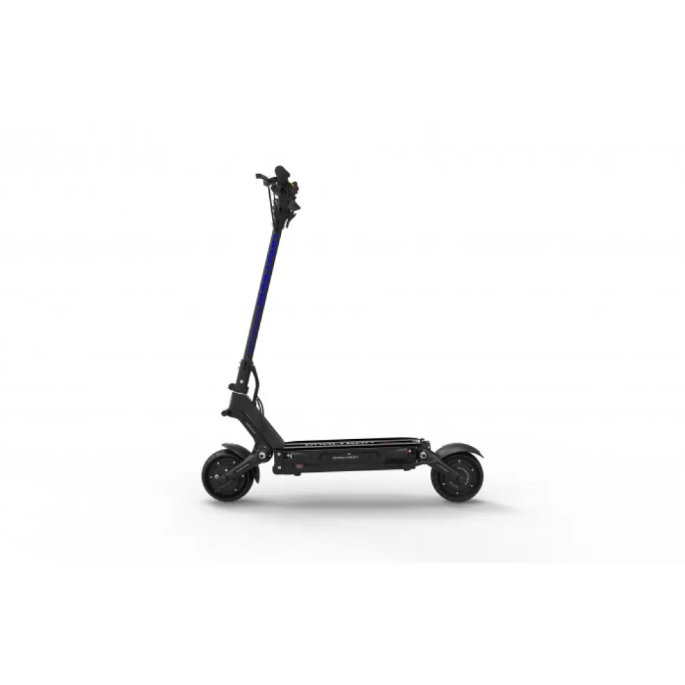 Модель самоката достаточно скоростная ее максимум 55 км. Каждое колесо оборудовано мотором мощностью 800 Вт, что в сумме дает 1600 Вт. Тормозная система работает на оба колеса. Это дает уверенность при маневрах. Нагрузка по массе 120 кг. Колеса 8 дюймов, дают достаточную устойчивость Dualtron Compact. Теперь есть возможность замены покрышки, без замены мотор-колеса. На деке световые элементы и сзади стоп огни красного цвета. В темное время суток вас обязательно заметят.