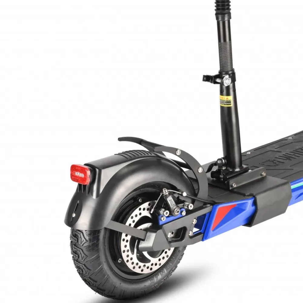 Футуристический внешний вид вызывает восторг и зависть одновременно. Большие надувные колеса (11 дюймов) изготовлены из прочной резины. Алюминиевый сплав рамы имеет небольшой вес (23 кг) и свободно выдерживает нагрузку до 125 кг. Компактные размеры 115*58*49 см и складная конструкция позволяют брать с собой в загородные путешествия. Дисковая тормозная система на каждом колесе обеспечивает быструю полную остановку. Удобное сидение идеально повторяет анатомические формы тела. Амортизация усовершенствована и хорошо скрывает дорожные ямы. Дека 22*47 см имеет нескользящую поверхность для большего удобства поездок.