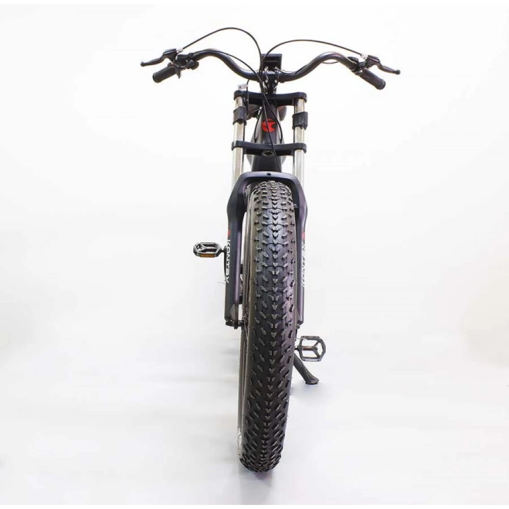 Электровелосипед GreenCamel Kontax (R26FAT 750W Bafang 48V LG 13Ah) - велогибрид от российской компании, предназначенный для поездок по нервным, изрытым, холмистым участкам дорог. Имеет мотор мощностью 750 Вт, показатель разгона скорости которого достигает 45 км/ч. При максимальной нагрузки на карбоновую раму в 120 кг, вес самого транспорта составляет всего 29 кг. Велогибрид оснащен 48 V аккумуляторной батареей ёмкостью 13 Аh, которой достаточно для преодоления расстояния до 50 км. Полное восстановление заряда всего за 5 часов. Лёгкая карбоновый рама хорошо смягчает толчки при езде, а в случае ремонта не утратит своих качеств. Яркий LCD-дисплей 8FUN C18S имеет расположение на руле из алюминиевого сплава, любую информацию системы на нем видно невыносимо от времени суток. Колеса оснащены износостойкими надежными дисковыми тормозами WINZIP.